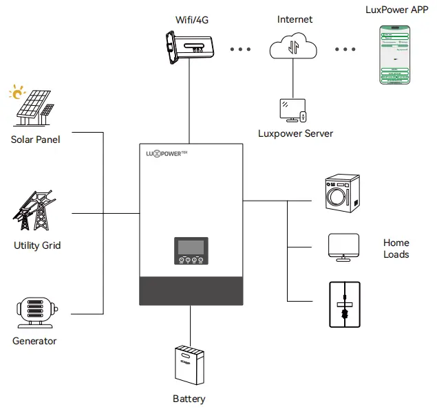 Biến tần ngoài lưới Luxpower SNA6000 hỗ trợ các hệ thống chuyển đổi DC-DC, đóng vai trò là nguồn dự phòng đáng tin cậy hoặc thay thế máy phát điện diesel. Với chức năng song song, thang đo công suất hệ thống từ 6kW đến 96kW. Biến tần hỗ trợ các chế độ chuyển đổi DC-DC làm việc: